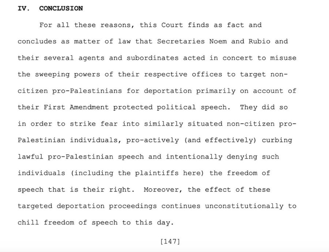 Senior Judge William G. Young in Boston's United States District Court issued the scathing 161-page opinion in American Association of University Professors v. Rubio. The issue in the case was “whether non-citizens lawfully present here in [the] United States actually have the same free speech rights as the rest of us.” Judge Young held that they do and that the First Amendment does not draw any distinction between the rights possessed in this regard by citizens and non-citizens. He wrote that Trump administration officials chilled free speech and peaceful assembly rights of non-citizens.